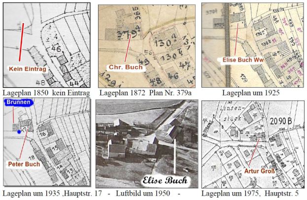 1985 Artur Groß, Gastwirt und Schreiner, lebte 1920 - 1999 / 1952 Elisa Buch Hausnummer 17 / 1938 Elisa, Witwe von PeterBuch II, Gastwirtin, vorher Peter Buch II., 1910 Philipp Buch, vorher